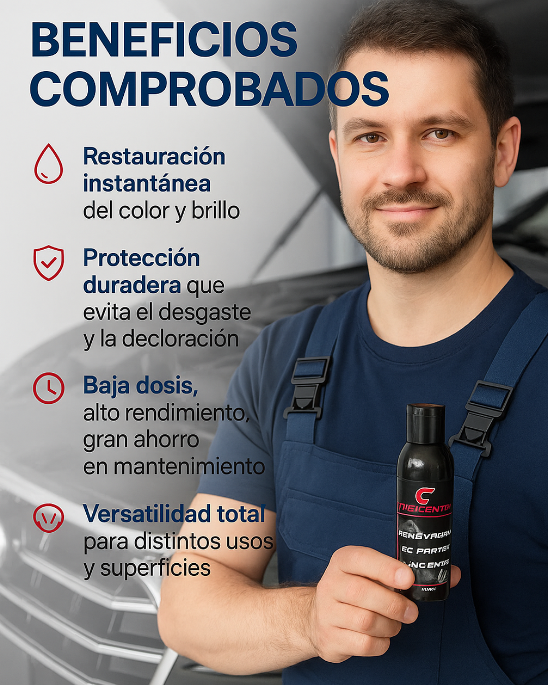Después de restaurar el color, el producto forma una capa protectora que ayuda a prevenir futuros daños de rayones o manchas.